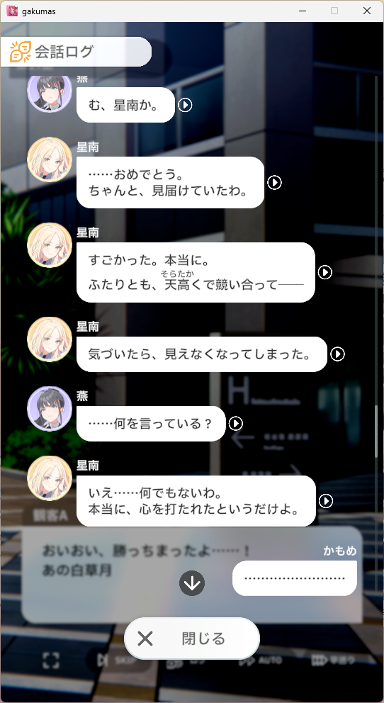 しかし対星奈・燕の時だけ月花姉さまはちゃんと調整してくるんだな……やっぱり同格というか、脅かすに足る存在と見てはいるのかな。